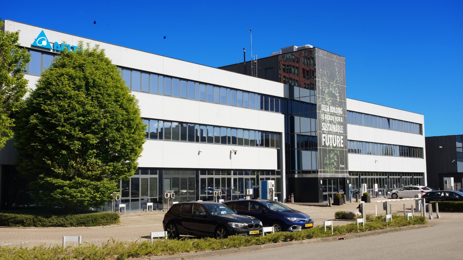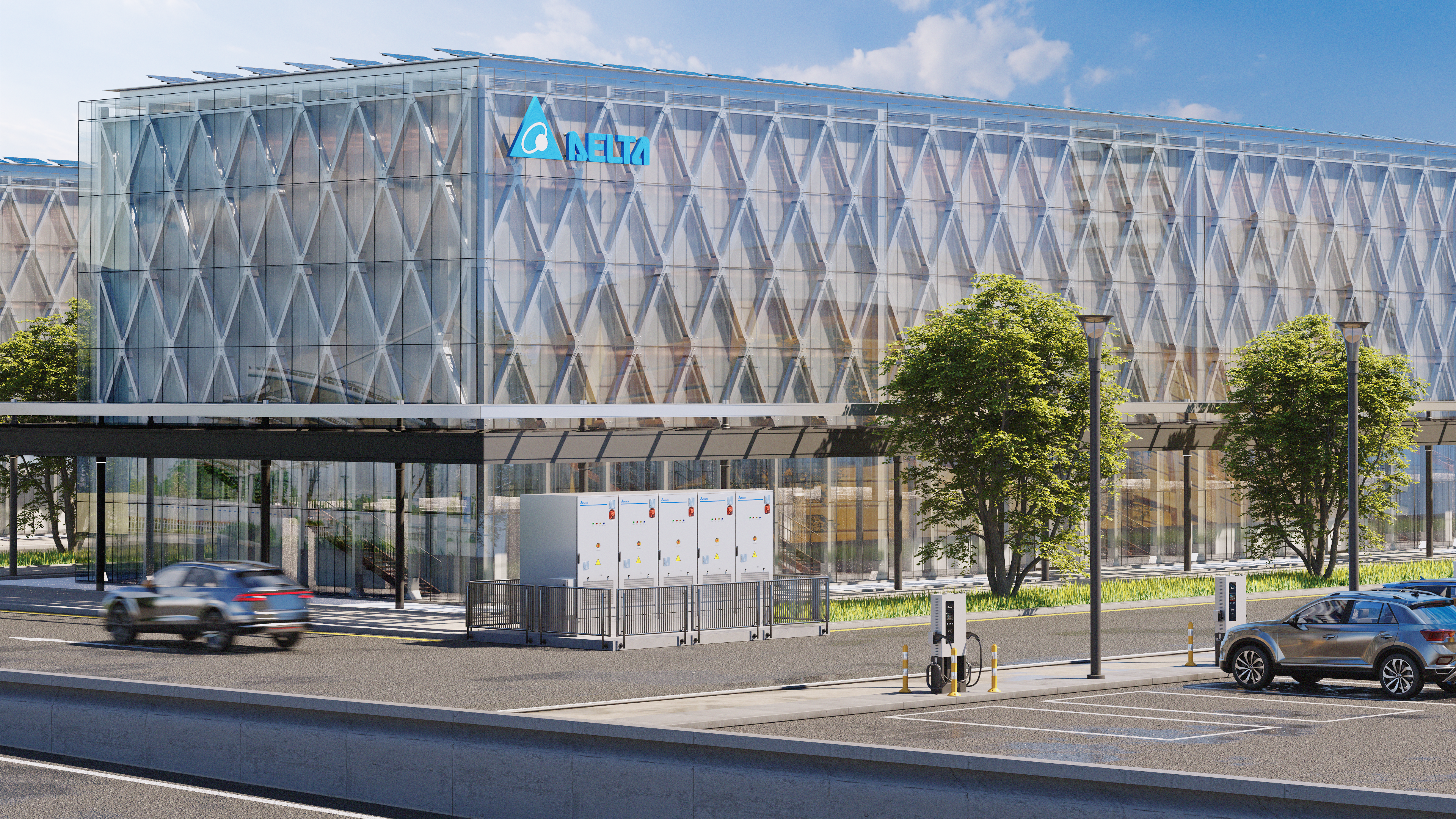 Am Delta EMEA-Hauptsitz demonstriert ein 150 kW Energiespeichersystem die Integration von Solarstrom, Gewerbespeicher und Ladeinfrastruktur – ein Praxisbeispiel für effizientes Energiemanagement im Gewerbe.