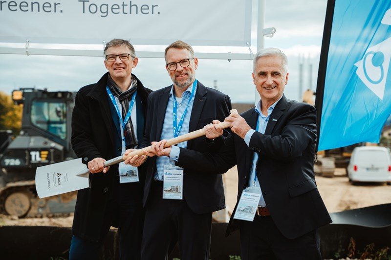 Emmendingen, Deutschland, 17. Oktober 2025 – Delta, weltweit führender Anbieter von intelligenten, nachhaltigen Lösungen in der Leistungselektronik, setzte heute gemeinsam mit seinem Baupartner Goldbeck den ersten Spatenstich für den Bau eines modernen Entwicklungszentrums mit Labor-, Test- und Versuchsflächen in Emmendingen bei Freiburg. Damit unterstreicht das Unternehmen seine Wachstumspläne für Industrie und Medizintechnik, setzt ein Zeichen für die Stärkung der Region Freiburg und erfüllt die eigenen Standards in höchster Energieeffizienz im Bau der eigenen Niederlassungen. Das hochmoderne, zweiteilige Gebäude mit rund 7480 Quadratmetern wird voraussichtlich Anfang 2027 fertiggestellt und über 200 Mitarbeitern Platz bieten. Durch die Implementierung von Deltas intelligenten Energiesparlösungen soll es den DGNB-Gold-Standard erreichen.