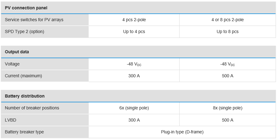 The Hybrid power core has integrated battery distribution, DC load distribution, rectifiers and solar chargers with PV connection panel. The power core is flexible and can easily be upgraded to meet changing demands.