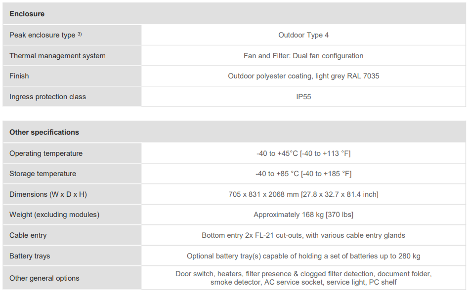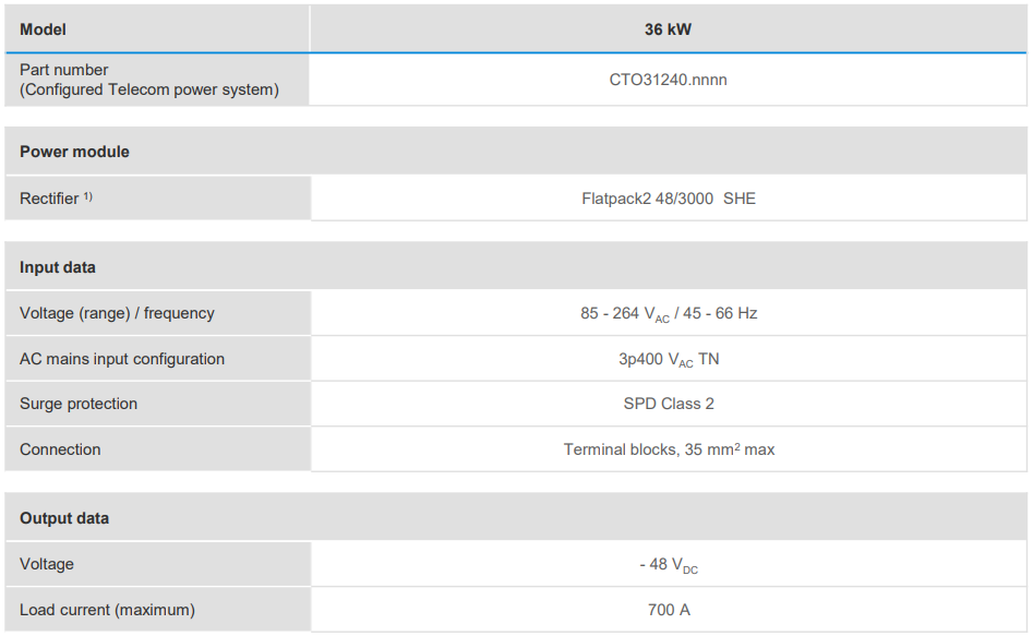The Flatpack2 outdoor power system provides solution for the most outdoor demanding applications applications with total power output up to 36kW DC load IP55 enclosure.