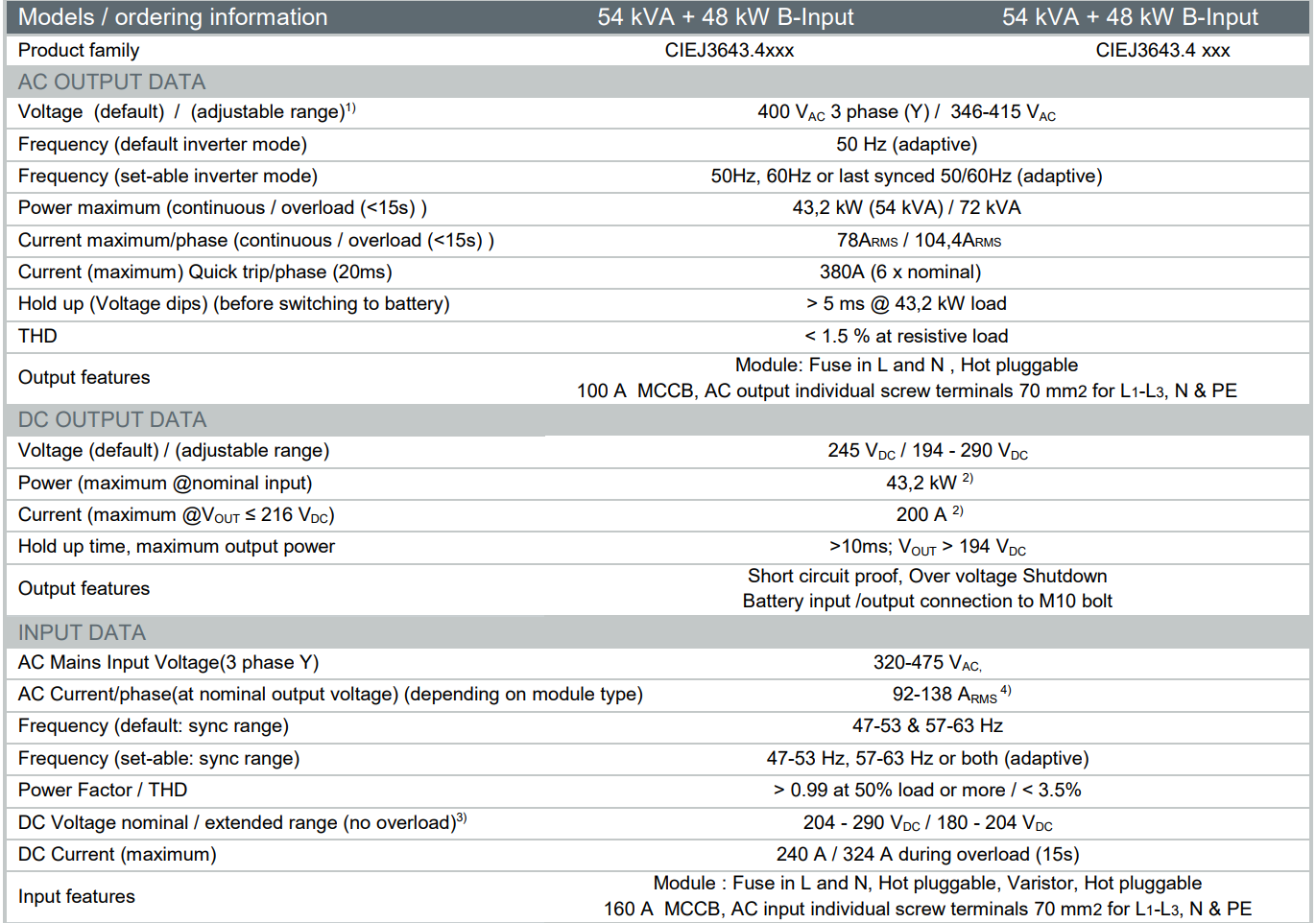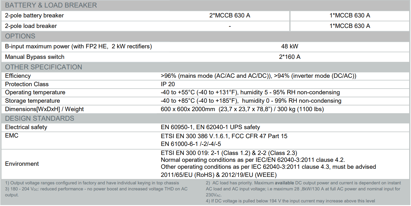 The scalable Rectiverter indoor system provides AC backup power for 400 VAC 3-phase or 230 VAC 1-phase loads, and220 VDC power for battery charging and optional DC loads