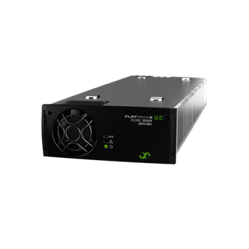 The Flatpack2 DC/DC 380/48 3000 SHE enables a high efficiency end to end DC power solution for data centers. It converts the 380 Vdc bus voltage down to 54 Vdc with an efficiency of 98.2%.