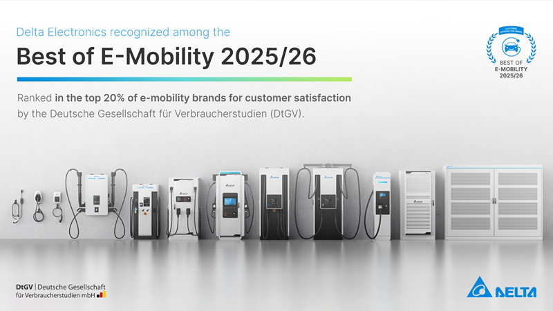Delta Electronics a été distinguée pour sa satisfaction client exceptionnelle dans le cadre de l’étude « Best of E-Mobility 2025/26 », menée par la Deutsche Gesellschaft für Verbraucherstudien (DtGV) – l’Association allemande d’études de la consommation. Il s’agit de la première édition de cette évaluation complète consacrée à la satisfaction client dans le secteur de l’électromobilité.
